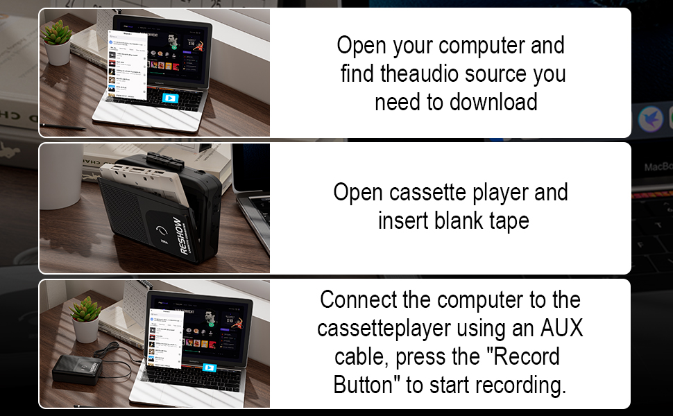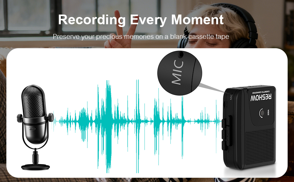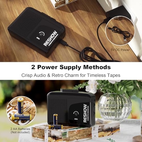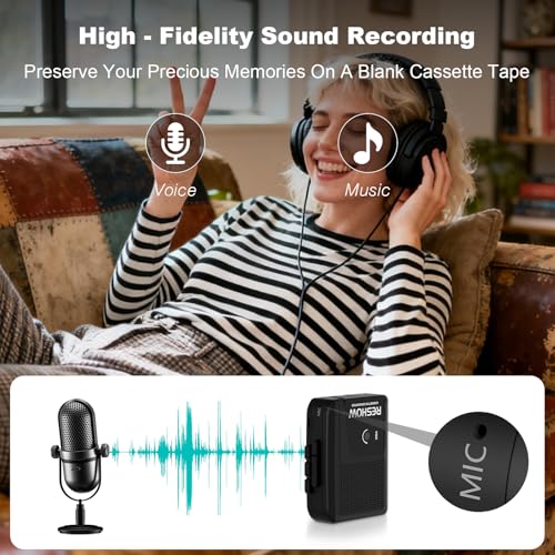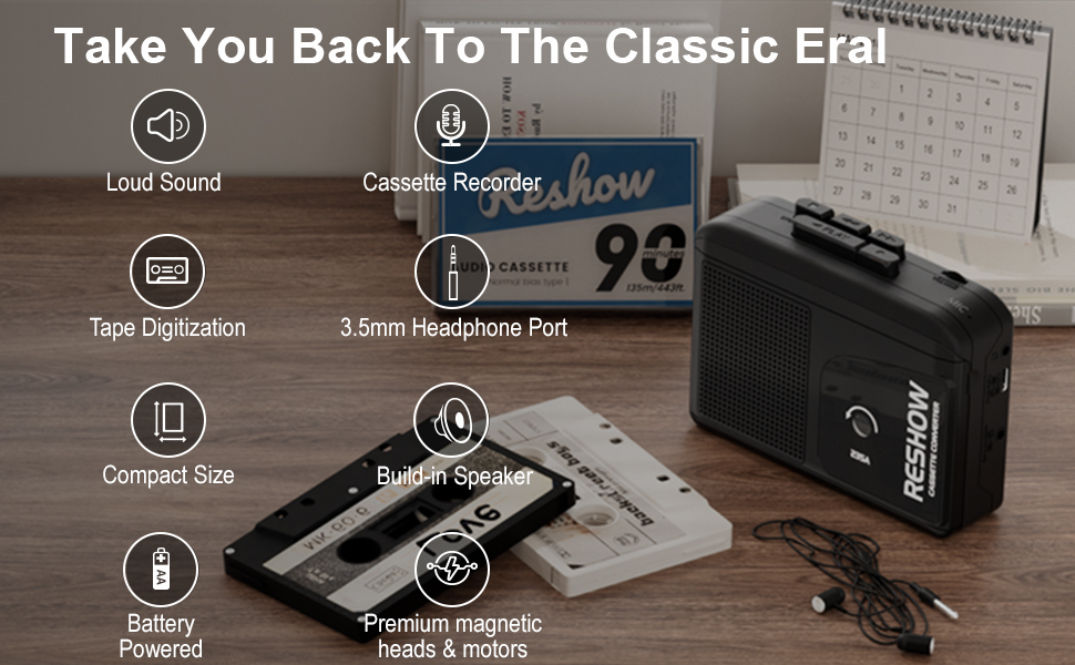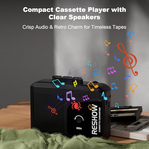- STEREO SOUND: Use Reshow tape player to play audio, high-quality sound allows you to relive the classic nostalgia, built-in HIFI audio core speakers, excellent sound quality; 3.5 mm headphone jack, use the included headphones, so you can enjoy your music indoors or outdoors, create your own private space.