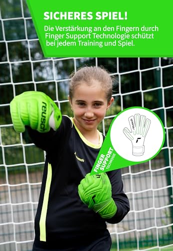 Reusch Attrakt Grip Finger Support Junior Flexible Goalkeeper Gloves Kids Teenagers Football Gloves with Finger Protection for All Pitch Surfaces and All Weathe
