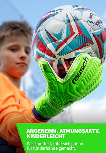 Reusch Attractive Grip Finger Support Junior: With these children's goalkeeper gloves for girls and boys, your child is well equipped for all weather conditions and playing field surfaces.