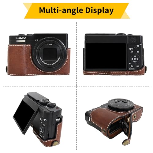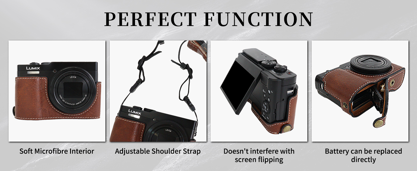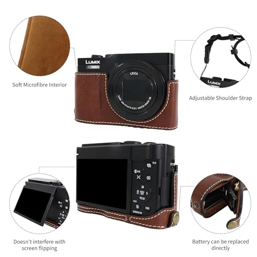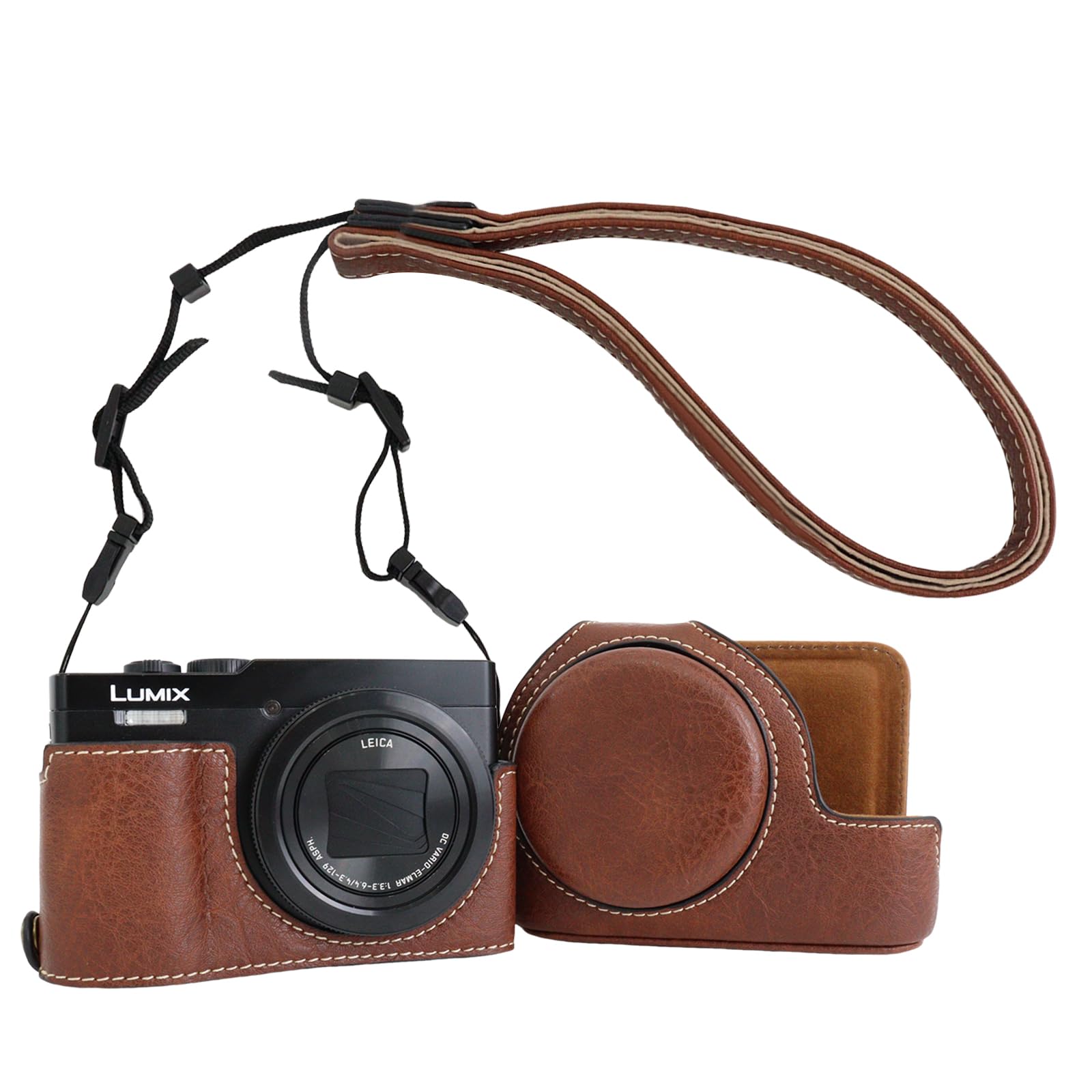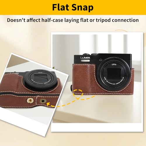 - DETACHABLE DESIGN:The front part of this Lumix TZ99 camera case is detachable; simply remove the front cover to take photos. The connecting buckle at the bottom is designed to be flat, allowing the half-case to be used independently. And its detachable shoulder strap is adjustable for comfort.