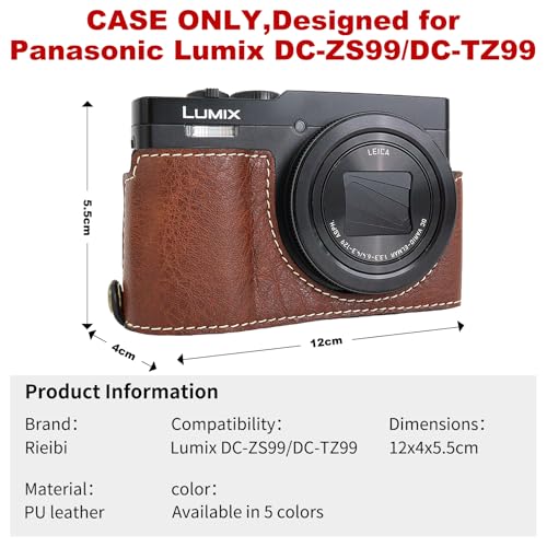 Rieibi TZ99 Camera case, PU Leather Camera Case for Panasonic Lumix DC-TZ99 Digital Camera, Detachable Protective Case with Adjustable Shoulder Strap, Beauty Cove