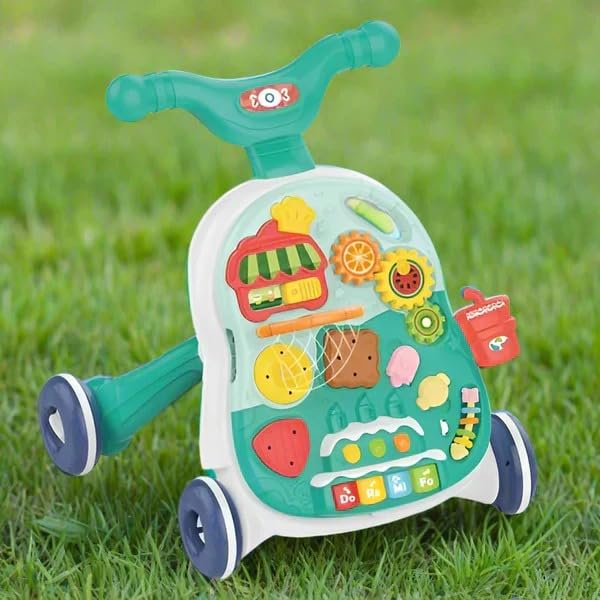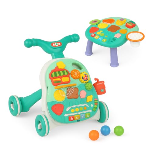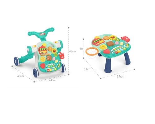 RKIDZ 2-in-1 Sit to Stand Walker and Educational Activity Table Ages 12 Months+,Ideal for Infants and Toddlers (Green, 38x11x34.5)