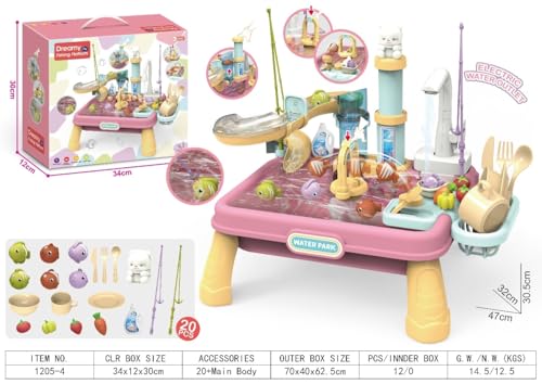 Turn hand-washing into happy playtime! This bright pink automated Water Washbasin gives children a fun way to learn hygiene and independence. Fill the base with water, press the button, and the gentle motor pumps real water through the tap—just like a real sink. The set includes a mirror, accessories, and cheerful light-and-sound effects to keep little ones engaged while they practise washing and tidying up. A safe, self-contained system that recycles water for endless fun and minimal mess. (Batteries non included)