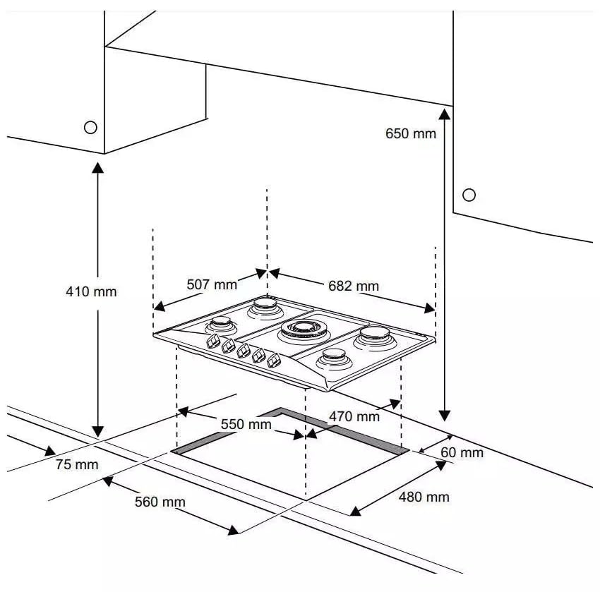 - Five Gas Burners – Spacious 70cm layout with 5 burners, including a powerful wok burner, ideal for versatile cooking.