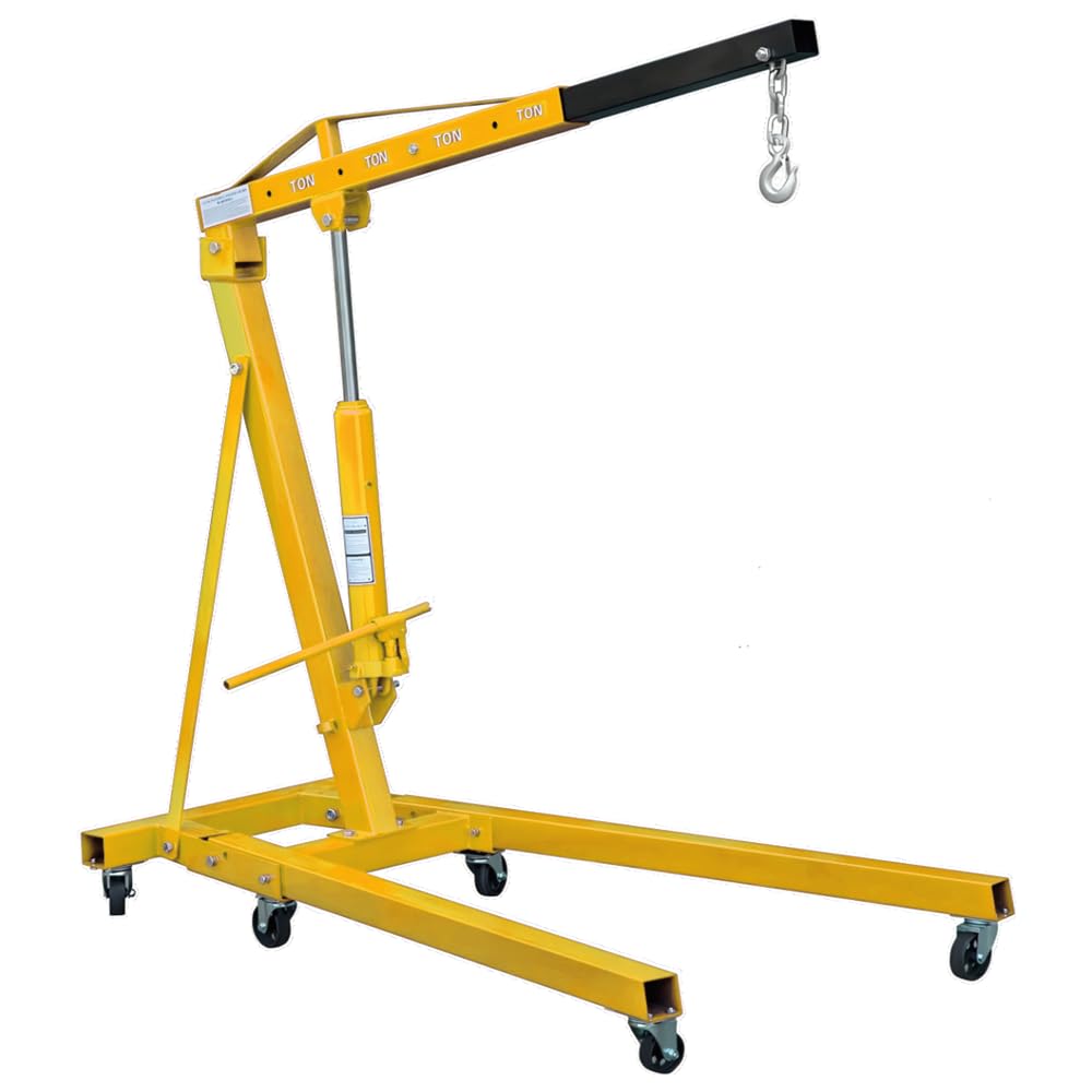 RocwooD 1 Ton Hydraulic Folding Engine Crane Hoist Lift Stand 1000kg Garage Floor Stand Lift Jack for Garage Car Lifting Tools Caster Wheels Black/Yellow