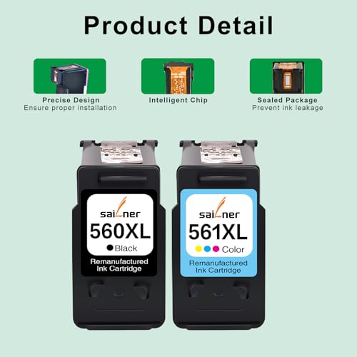 - Reliable Print Quality: Sailner PG-560XL CL-561XL twin pack produce clear text and vivid images, making them perfect for everyday documents as well as colorful photo prints, whether at home or in the office. Engineered for durability, they guarantee consistent output and long – lasting performance, enabling you to capture memories and manage work with ease