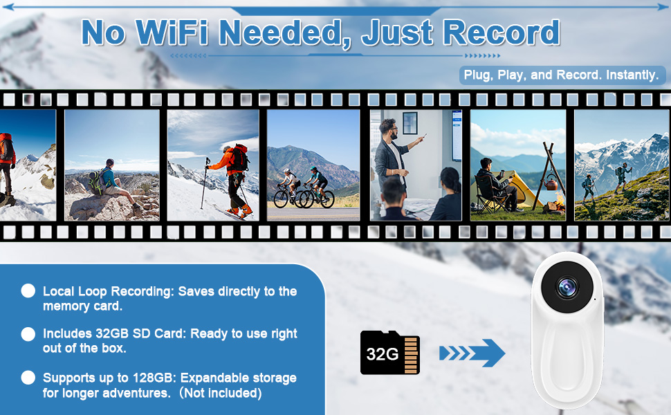 Thumb-Sized & Ultra-Light (27g) – Portable POV Camera for On-the-Go Recording: This mini body camera is as small as a thumb and weighs only 27g, slipping easily into your pocket, bag, or gear without adding bulk. Whether you’re mountain biking down rugged trails, backpacking across scenic landscapes, or hitting the slopes for skiing, this compact wearable camera is your perfect companion to capture every thrilling and beautiful moment—no heavy equipment, no hassle.