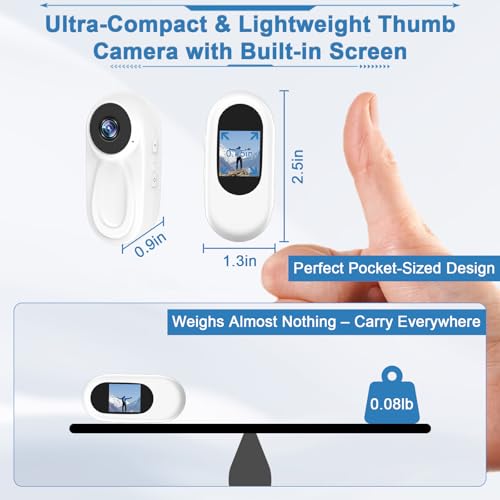 32GB Built-In Storage (Up to 128GB Expandable) + 1-Inch HD Display: Mini thumb camera comes with a pre-installed 32GB memory card to store a large number of high-definition videos and photos, maximizing storage efficiency right out of the box. Need more space? Expand up to 128GB with an additional memory card (not included). Equipped with a 1-inch high-definition display, you can instantly preview footage, adjust recording settings, and ensure every shot is perfect—so your videos always stand out from the crowd.