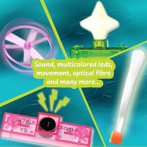 - [EDUCATIONAL TOY TO LEARN ABOUT SCIENCE AND ELECTRONICS] – Learn how to make electronic circuits 100% safely. Assemble your own circuit with all the components included in this electronics kit and experience how the helix flies, the star shines, the sound comes out of the speaker and how the LED changes to different colours.