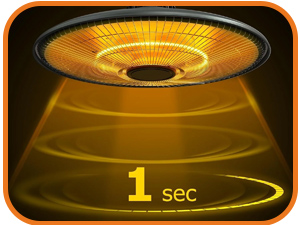 Experience heat the moment you switch it on. This 1500W carbon-fibre infrared heater begins warming in as fast as 1 second. Unlike traditional heaters that waste energy heating the air, infrared heaters directly warm people and objects within their range.