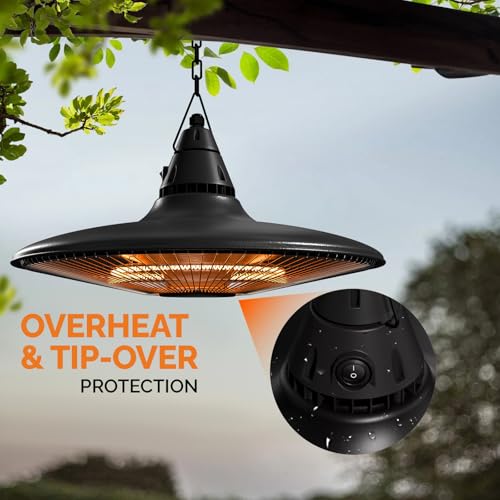 Senelux 1500W Hanging Patio Heater | Infrared Ceiling Heater for Courtyard, Patio, Garage & Indoor Use | IP65 Water-Resistant | Remote Control | Overheat & Tip-Over Protectio