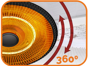 The circular design ensures heat radiates outward evenly in a full 360-degree radius for consistent warmth below.
