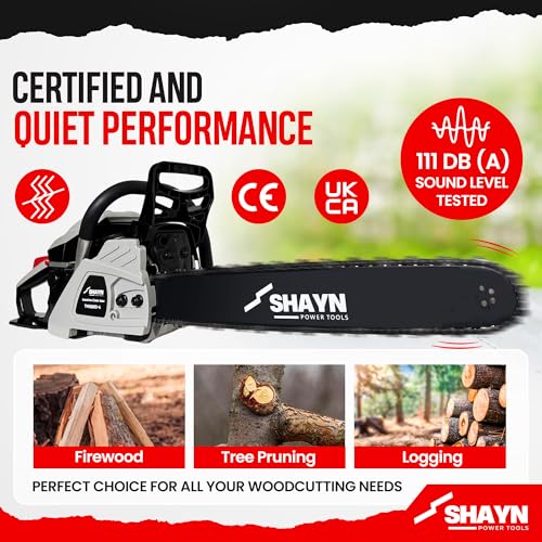 - ✅ [CERTIFIED BUILD WITH EXTENDED WARRANTY COVER]: Our petrol chain saw has been professionally tested at 108 dB(A), offering quieter performance compared to most petrol models. As a reliable 2 stroke chainsaw, it meets UKCA and CE standards and includes 1-year standard warranty plus 2-year extended cover with activation. UK-based support is always available.