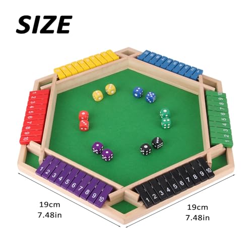 - M size (hexagon): Hexagonal design, side length 18.8 cm (7.4″), includes 12 dice, thickness 3.2 cm (1.26″)