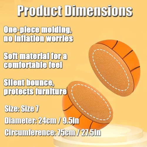 Optimal Size: Our Quiet Indoor Dribbling Basketball weighs 350 grams and is size 7, making it ideal for practice and leisure play. With a diameter of 24 cm (9.45 inches) and a circumference of 29.5 inches, it offers a comfortable grip and smooth control, ensuring a realistic basketball experience
