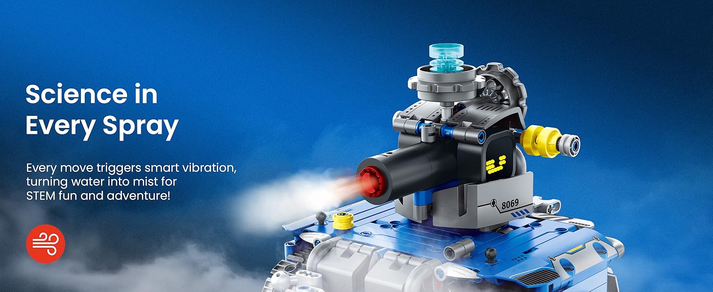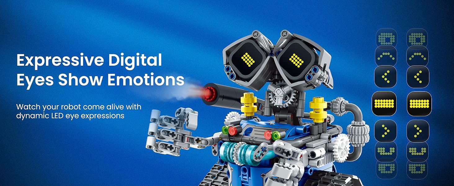 Creative STEM Robot Toy: The robot’s head, arms, and hands can be freely positioned to create a variety of charming poses, inspiring fun interactions. Enjoy interactive fun with technic robot digital LED eyes that change expressions, playful sound effects. Its weapon is a cannon that can spray mist, with infrared light adding to its futuristic feel. Your child will be thrilled to have such a high-tech robot friend!