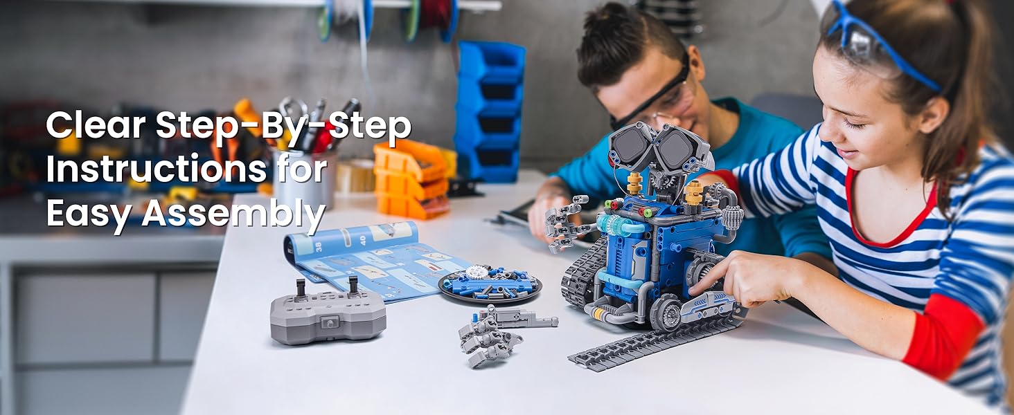 Clear & Colorful Build Manual: This STEM engineering robot kit includes detailed, colorful instructions and step-by-step guidance to make assembly easy. Kids can build their own robots independently or with family, enjoying quality time together and a confidence-boosting building experience