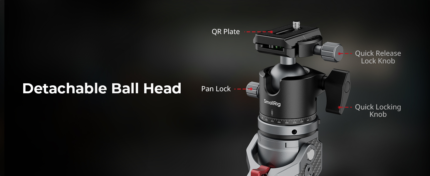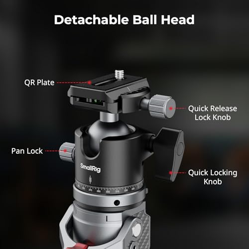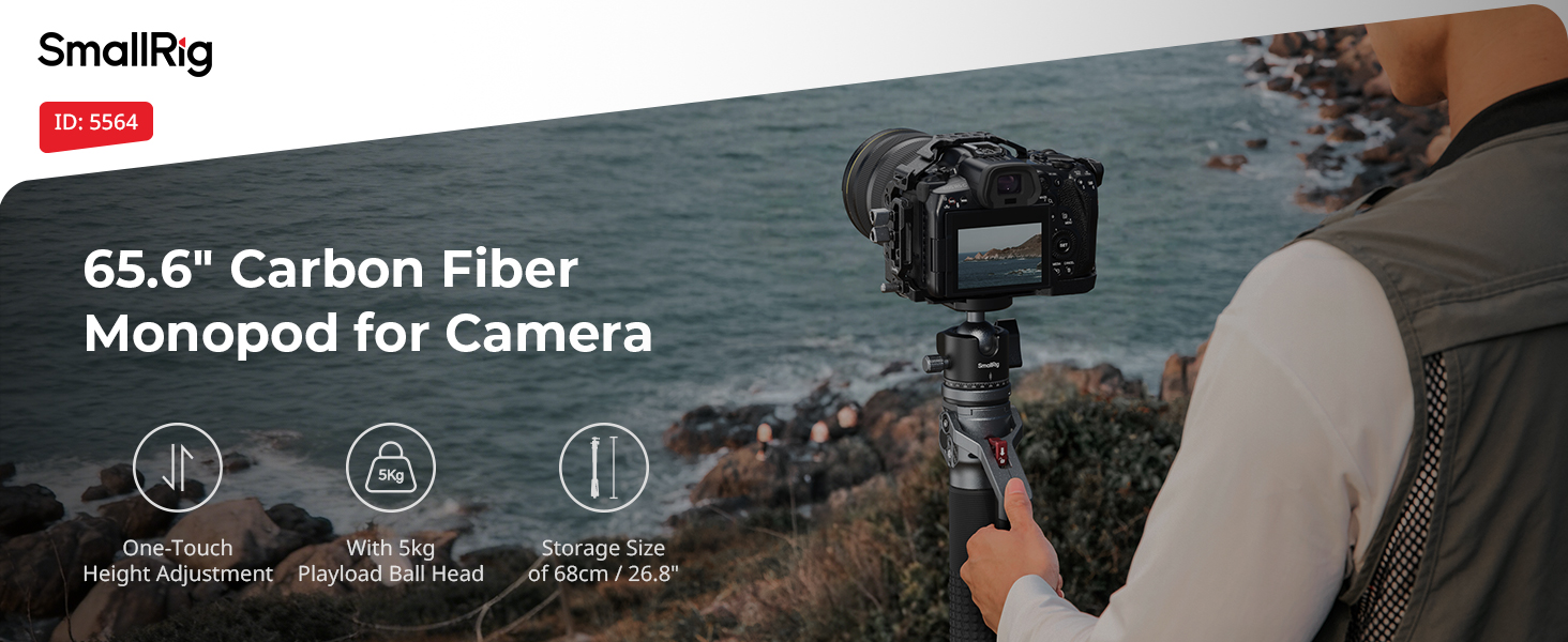 SMALLRIG 166.5cm / 65.6″ Carbon Fiber Monopod for Camera, Compact Camera Monopod with Storage Size of 68cm / 26.8″, Weighs 1.72kg / 3.8lb, One-Touch Height Adjustment, Max. 5kg Playload Ball Head-5564