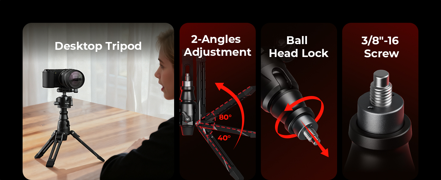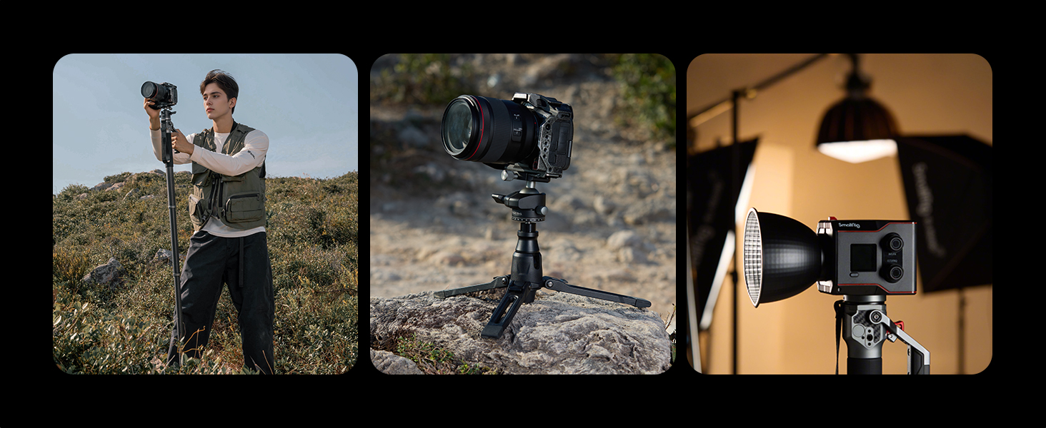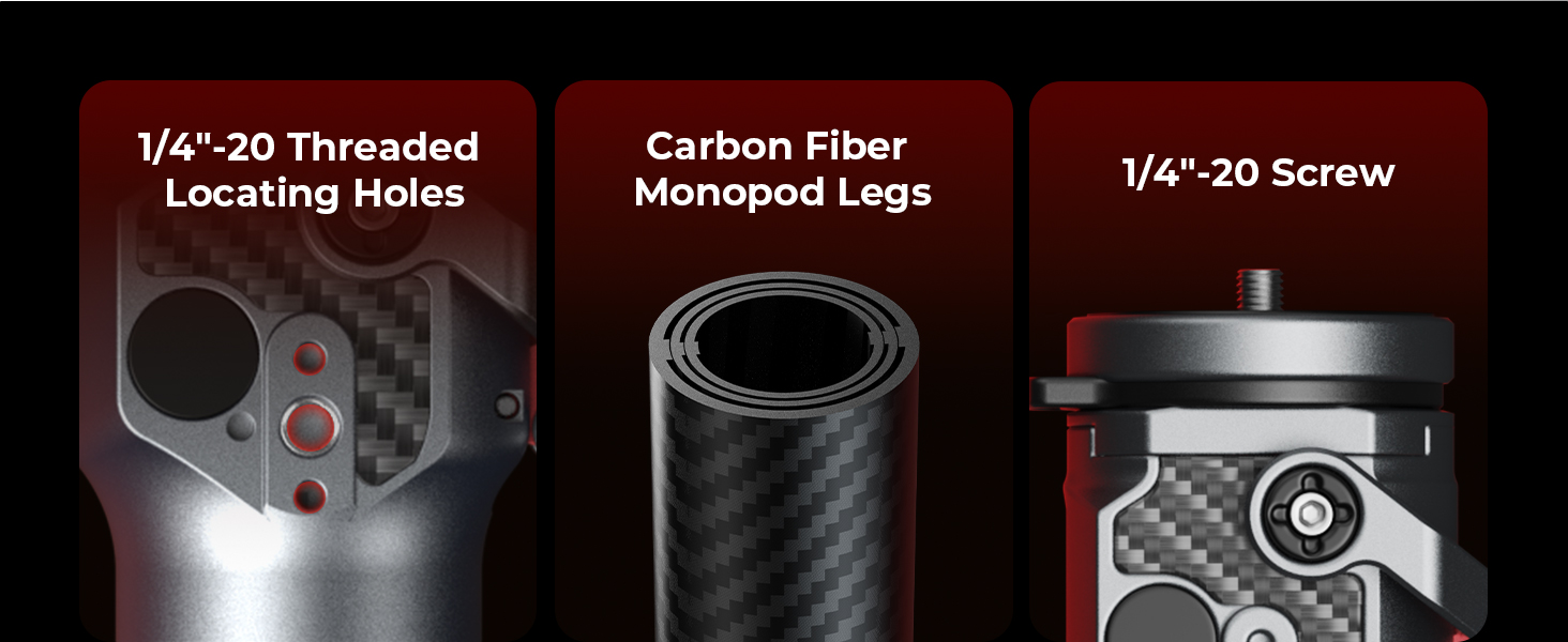 - Accessories Expansion – The monopod also features a 1/4"-20 threaded locating hole, allowing for the attachment of magic arms and other accessories to expand your configurations. It is also equipped with a double-ended spigot with 1/4"-20 and 3/8"-16 male threads, ensuring broad compatibility of video head or ball head, for various photography scenarios