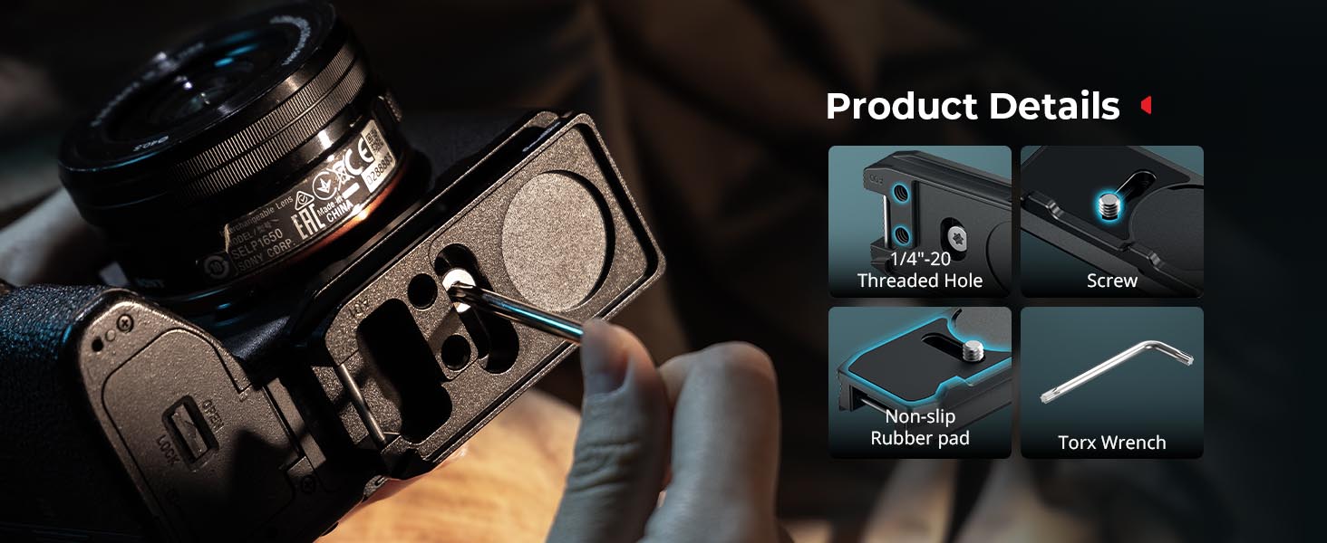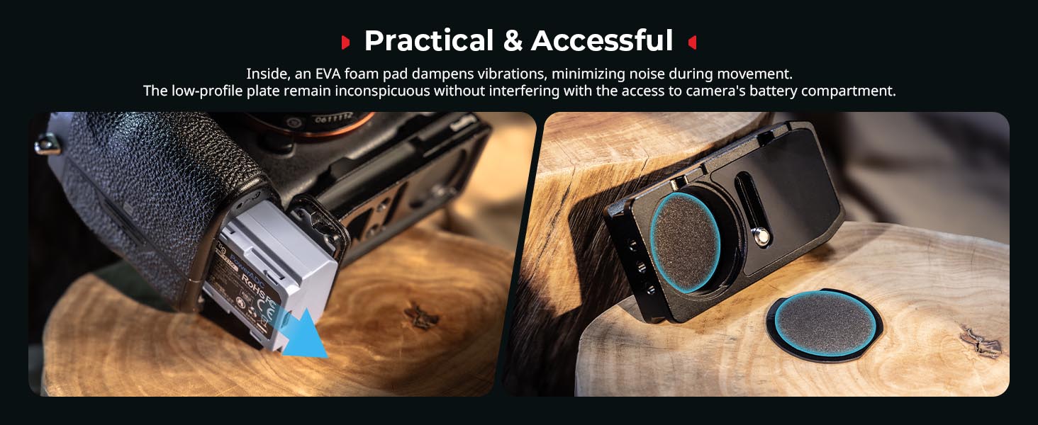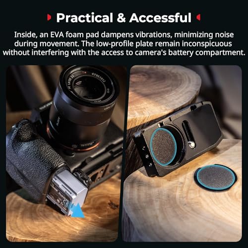 【Designed for AirTag】- The Quick Release Mount Plate features a hidden compartment that securely holds for Apple AirTag. Designed for Sony Cameras, it fits seamlessly on the camera's base with anti-twist tabs and non-slip rubber pads for added stability.