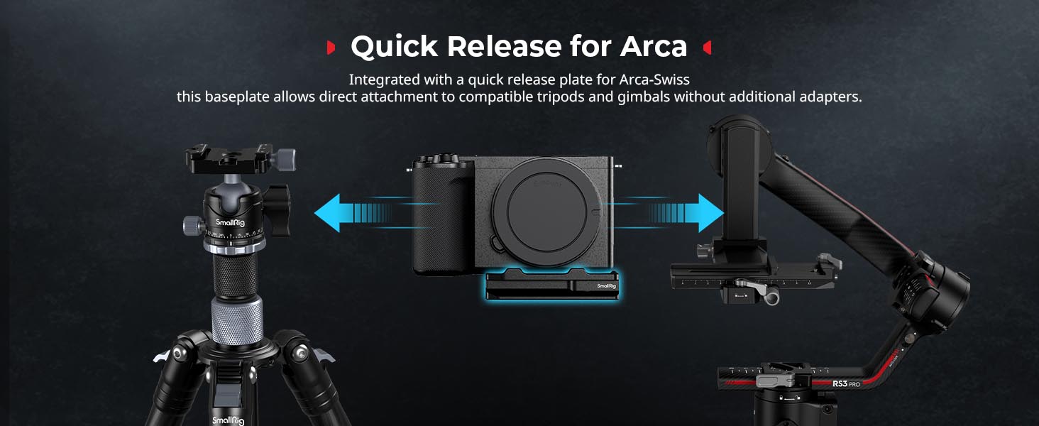 【Quick Release for Arca】-Integrated with a quick release plate for Arca-Swiss , this baseplate allows direct attachment to compatible tripods and gimbals without additional adapters. Inside, EVA foam padding absorbs vibrations, minimizing noise during movement.