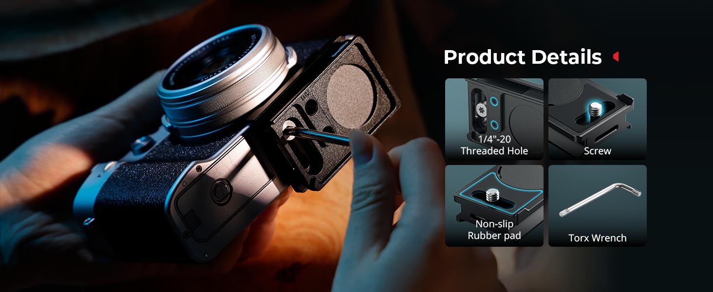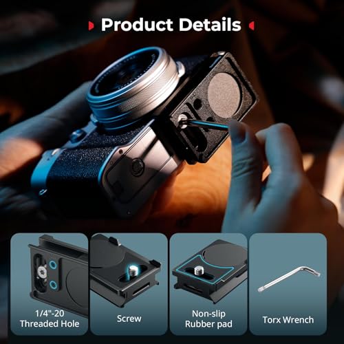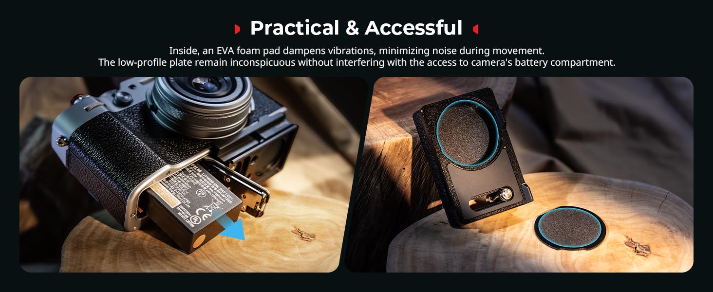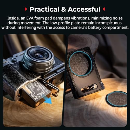 - 【Designed for AirTag】- The Quick Release Mount Plate features a hidden compartment that securely holds for Apple AirTag. Designed for FUJIFILM Cameras, it fits seamlessly on the camera's base with anti-twist tabs and non-slip rubber pads for added stability.