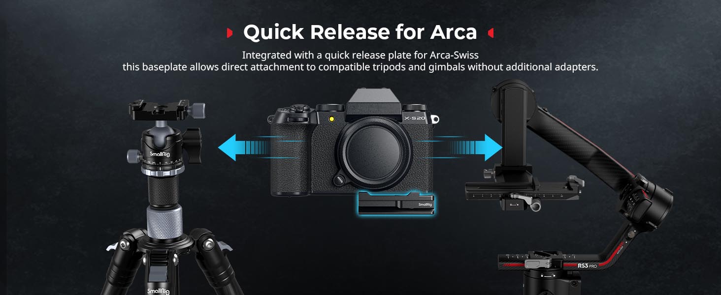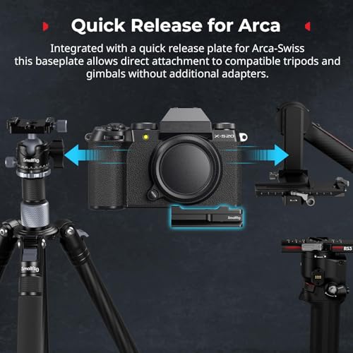 - 【Quick Release for Arca】-Integrated with a quick release plate for Arca-Swiss , this baseplate allows direct attachment to compatible tripods and gimbals without additional adapters. Inside, EVA foam padding absorbs vibrations, minimizing noise during movement.