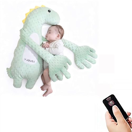 Smart Baby Soother with Remote Control Patting & Warming Comfort, 25.6” Plush Hugging Toy with PE Bean Hot Pack for 0-12 Month Newborns to Reduce Startle Reflex, Aid Sleep & Assist Burping (dinosaur)