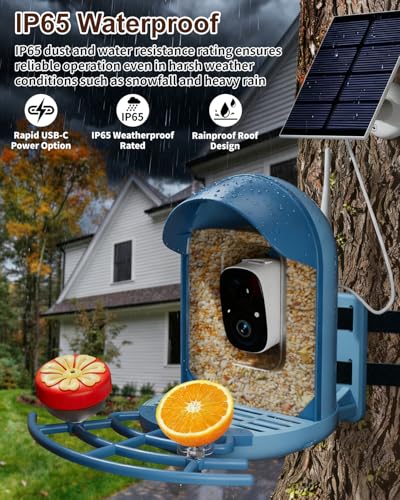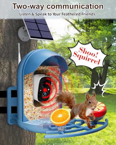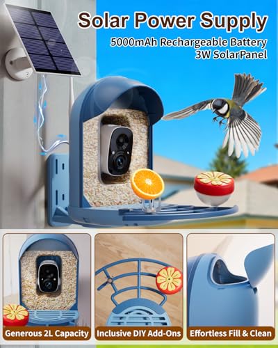 Smart Bird Feeder with 2K Camera, Solar Powered Wireless Birds House with APP Control, Night Vision, Motion Detection Alerts, IP66 Outdoor Birdfeeder for Backyard Garden Bird Watching,Blue