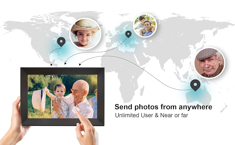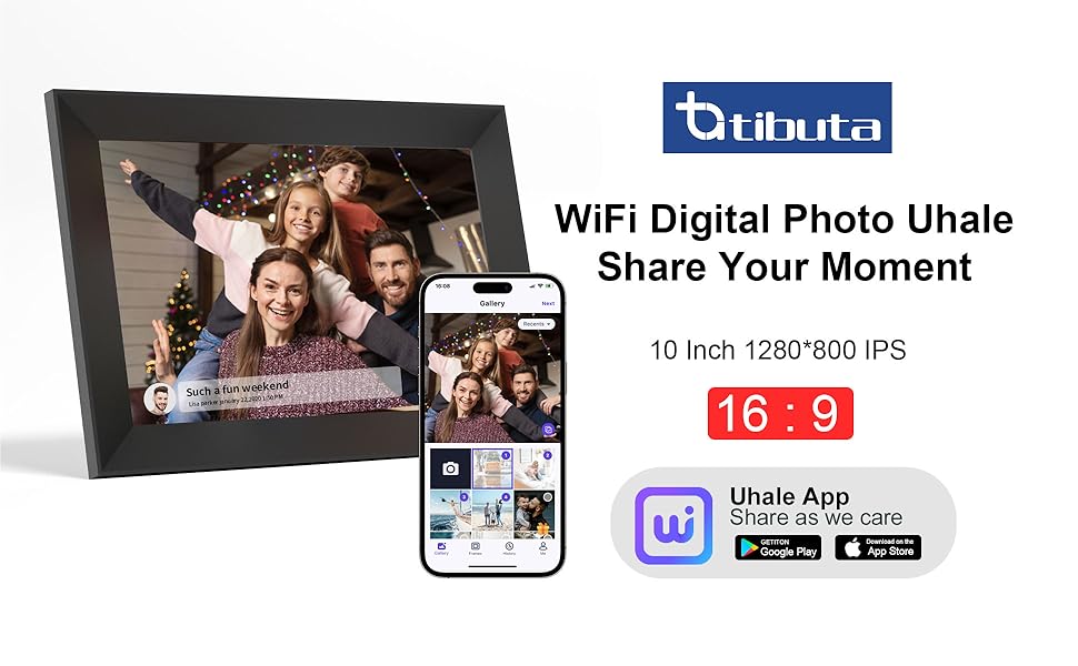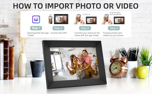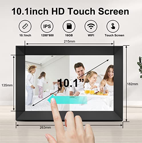 Smart Digital Picture Frame WiFi 10.1 Inch HD 1280×800 IPS Touch Screen Digital Frame with 16GB Storage Easy Setup to Share Photos or Video via Uhale APP Auto-Rotate Wall Mountable Black