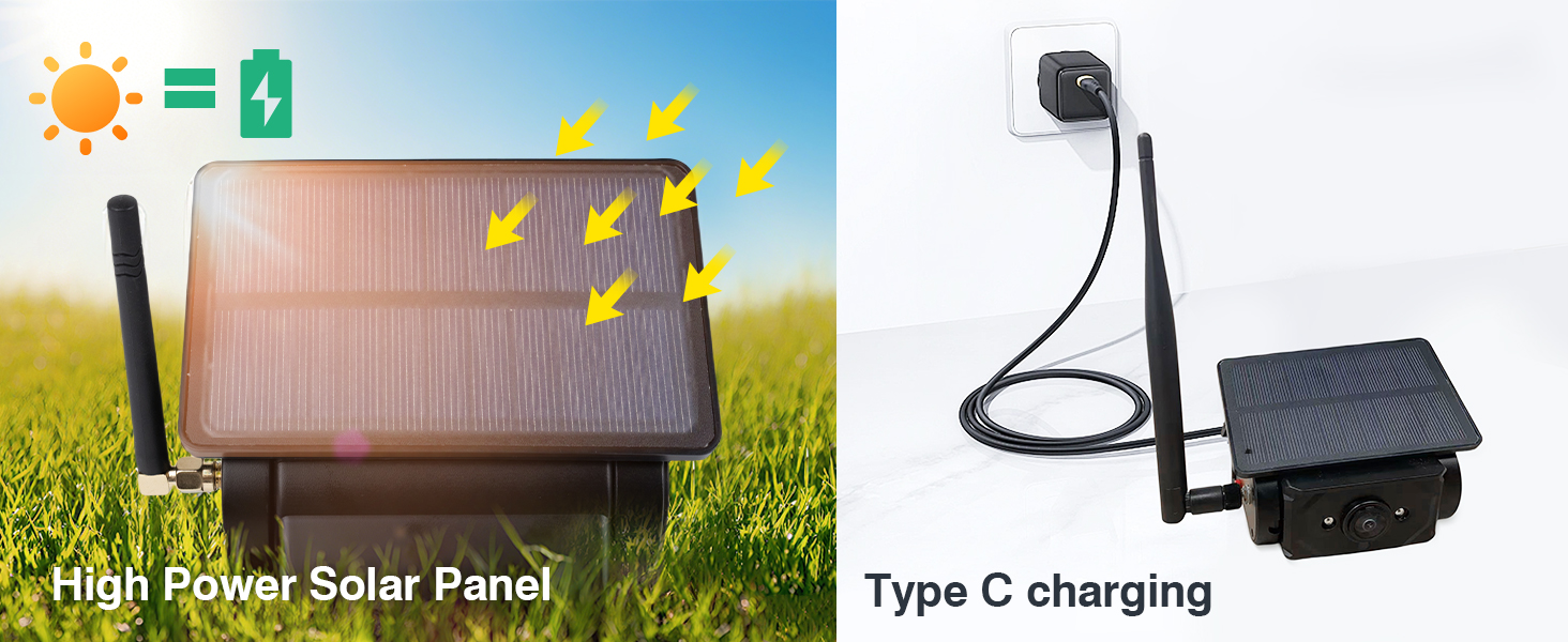 - 9600mAh Battery & Solar Powered: This reversing camera kit for vans has a built-in 9600mAh large-capacity rechargeable lithium-ion battery and is equipped with a 5W solar panel and Type-C fast charger (5V/3A), which can provide longer battery life for the backup camera wireless when the battery is low or the light is insufficient.