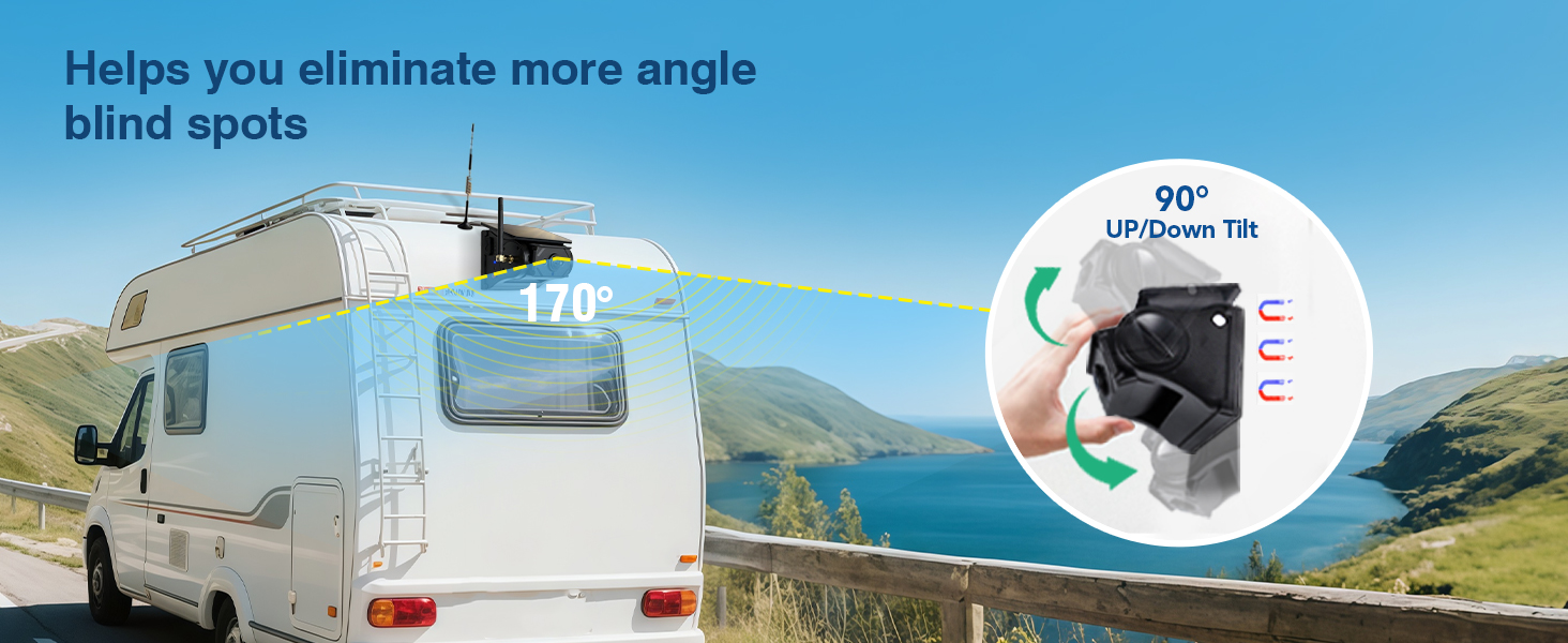- 1080P & HD Night Vision: This reversing camera kit for vans has a 170° ultra-wide-angle lens, with a wide field of view and a panoramic view of the road conditions; upgraded 1080P HD resolution, the picture is clear and sharp. The car reversing cameras has a built-in infrared night vision function, which can also clearly image in low light and night environments, ensuring all-weather driving safety.