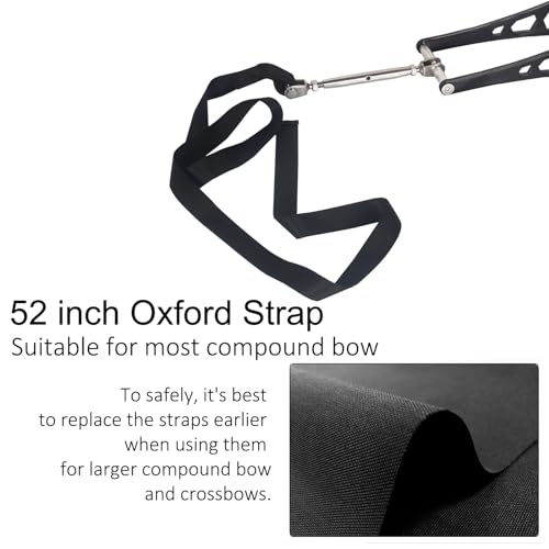 【52inch Strap】The included connecting strap is about 52inch long, suitable for most compound bows. However, to be on the safe side, when you use it for big pound compound bow or crossbow, please replace it with a heavy duty tubular webbing strap with more breaking strength in advance.