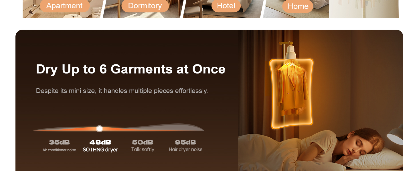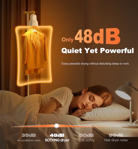 Quiet Operation — Only 48dB – Enjoy peaceful drying without noise. This mini dryer for clothes works quietly enough for use in bedrooms, offices, or shared spaces.