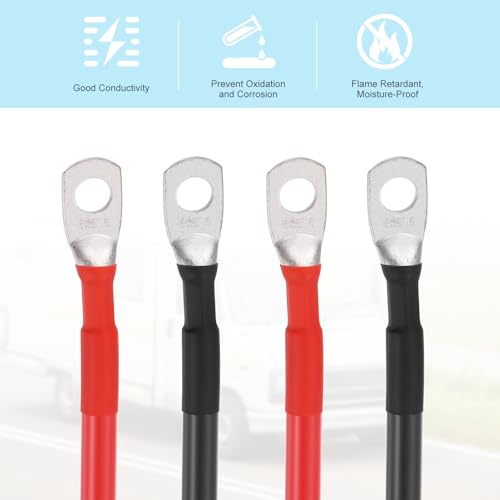 - The battery wires are made of pure copper for excellent conductivity; the cable terminals are made of tinned copper to prevent oxidation and corrosion, while the PVC insulation sheath is effectively flame retardant, waterproof and moisture-proof.