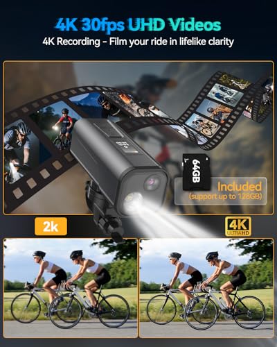 - 【4K UHD 30fps + Professional 6-Axis Stabilization】Capture stunning 4K UHD footage with advanced 6-axis EIS stabilization. Whether you’re riding on rough mountain trails, city streets, or commuting on an e-scooter, this Bike Camera delivers smooth, shake-free video. Perfect for sports recording, outdoor adventures, incident evidence, and social media content. Supports 4K / 2.7K / 1080P resolutions.