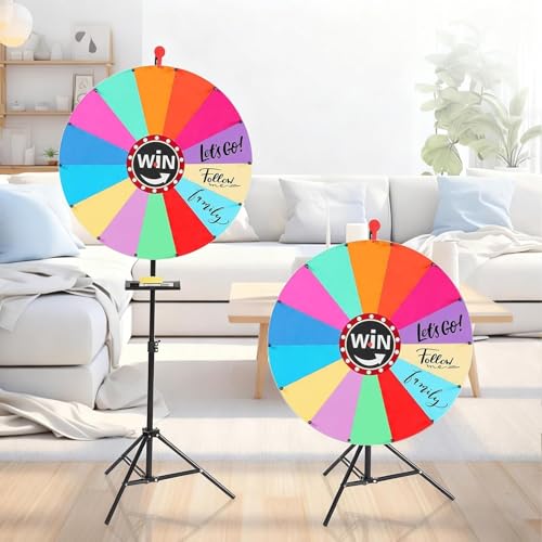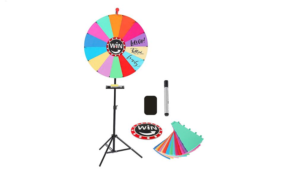 - Event-Friendly Stability: Built to last, this prize wheel includes a reinforced metal frame and height options, catering to varying user needs, delivering consistent performance at home events, and maintaining balance for individuals of every generation during interactive occasions