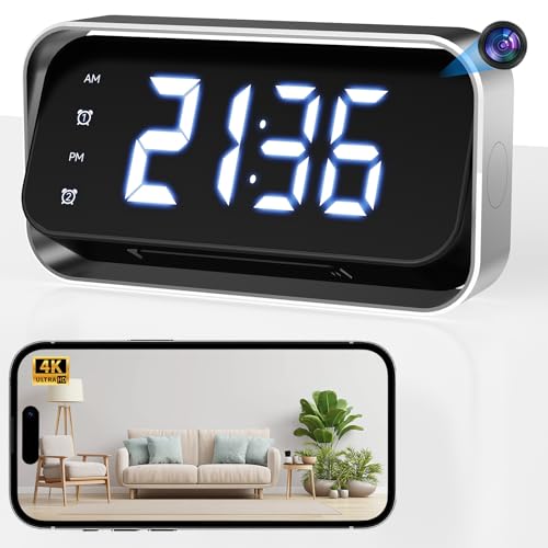 Spy Camera with Hidden Clock – WiFi Nanny Cam with 4K HD Video, Indoor Hidden Camera with Audio, Night Vision, Motion Detection, Local&Cloud Storage, Remote View, Mini Camera for Home, Office