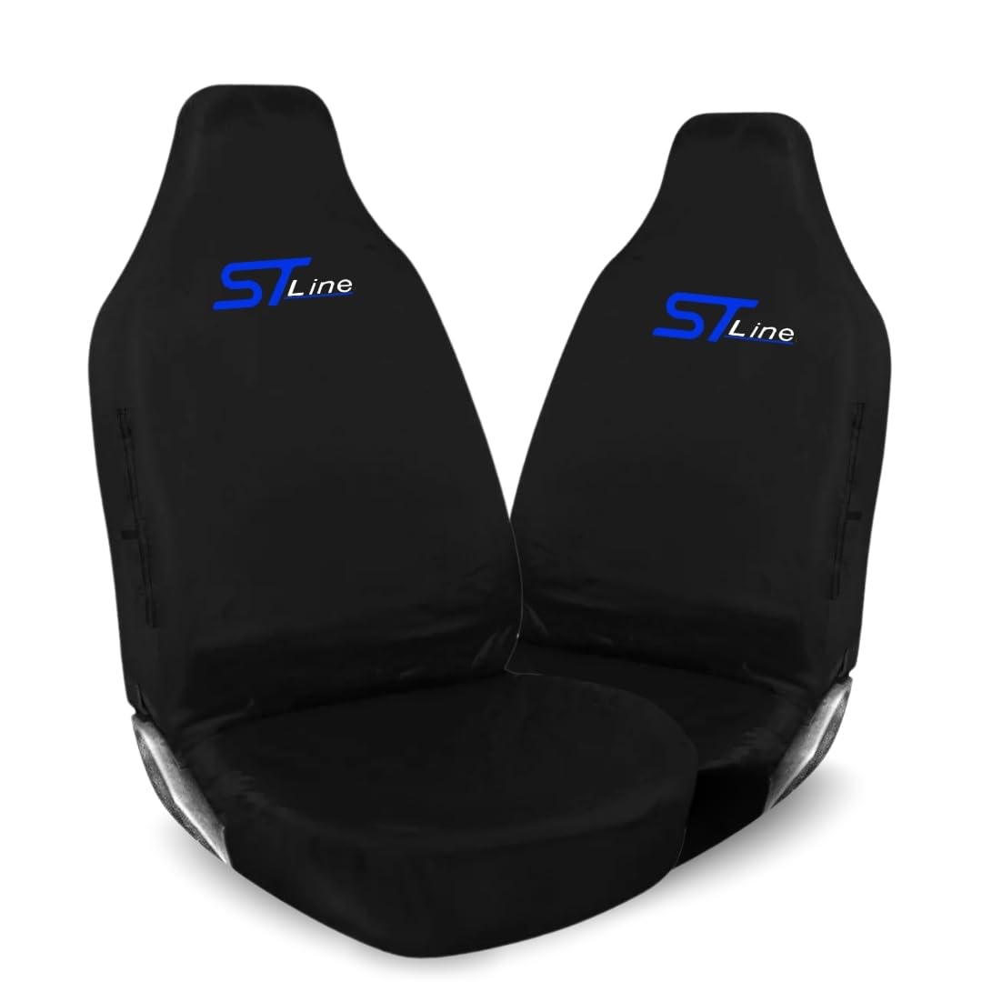 ST Line Car Seat Covers – Black Waterproof Front Seat Protectors, Universal Fit, Durable & Easy to Clean (1+1 Set) (Blue)