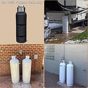 - Crafted with reinforced fabric layers, the propane tank cover ensures long-lasting protection against outdoor elements, offering a secure fit for 100lb tanks and supporting safe handling across multiple environments