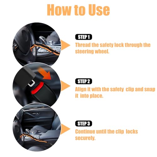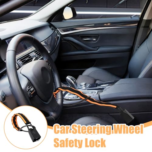 Steering Wheel Lock, Car Steering Wheel Locks Seat Belt Lock Reflective Stripe Car Security Devices Anti-Theft Device Universal Compatible for SUV Golf Cars Cart Van Trucks with 3 Keys Orange