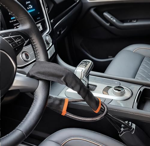 - 【Cut-Resistant & Scratch-Proof Construction】: Car steering wheel locks Built with high-strength braided steel wire and wrapped in a soft PVC sheath, this lock resists cutting tools and prevents scratches on your steering wheel. The durable materials withstand sawing, pulling, and hammering attacks, ensuring long-term reliability without damaging your car's interior.