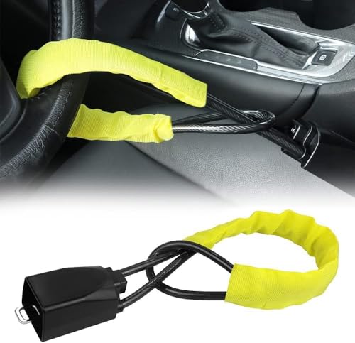- 【Material】Our high-performance braided steel cable provides superior resistance to cutting and sawing, while the anti-scratch material ensures that the steering wheel remains unblemished. The brightly colored nylon cover serves as a deterrent to thieves, signaling them to keep away from your car. Protect your car with the ultimate defense – steel strength, scratch protection, and bold deterrence!