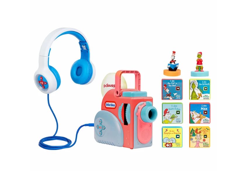- COMPLETE SET: Comes with Dr. Seuss character figurines, 6 pre-loaded stories, and comfortable headphones for personal listening enjoyment