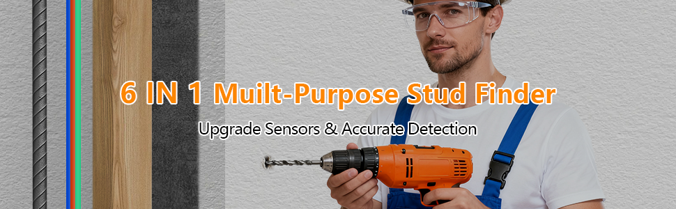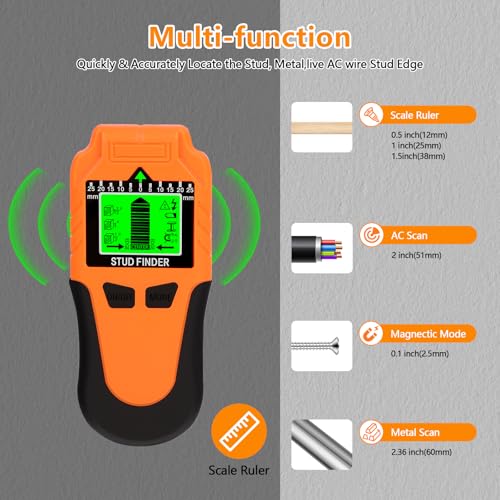 - 6-in-1 High-Precision Wall Scanner – This professional stud finder detector features 3 stud scanning modes (0.5"/1"/1.5") with dedicated settings for metal, live wires, and pipes/joists. The stud detector for walls is perfect for home renovations, DIY projects, and contractor work—ensuring safe drilling with comprehensive behind-wall visibility.