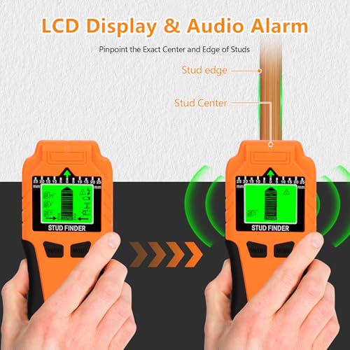 Stud Finder Wall Scanner, 6 in 1 Electronic Stud Detector Finder with LCD Display & Audio Alarm, Stud Sensor Edge Center Finding for Wood AC Live Wire Metal Studs Detection Joist Pipe