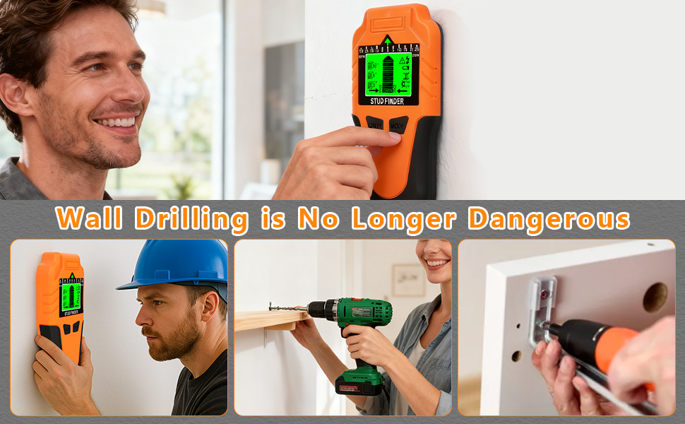 It can detect metal, wood and live wires hidden in walls, ceilings and floors. Decoration wall drilling is a must for detection.