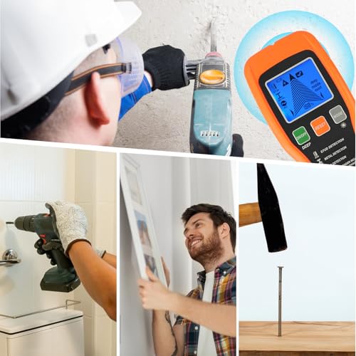 - 7 in 1 stud finder: The stud scanner features 5 modes: Stud scan 1/2 inch(12 cm), 1 inch (25mm) and 1.5 inches (38 mm); Metal scan2.36in (60 mm) and AC scan 2in (51 mm),plus Nail Detection, Nail Collection Reminder, Bubble Level, and Backlit Display. You can switch to the required mode to help you find the center and edge of the wood, joist, pipes,or beams, live AC wires and deeper metal in the wall accurately.