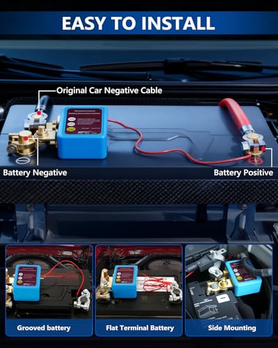 - 【Easy Installation】Designed for simple setup without cutting or modifying original wiring. SUPAREE 12V Battery Isolator Switch fits both recessed and flat-top batteries and can be mounted on the top or side of the battery. Compatible with M8 battery terminals. Please confirm your battery size before order. Make sure the battery is fully disconnected before starting the installation and perform an ignition test afterward. Support remote control, no need to frequently open the bonnet.
