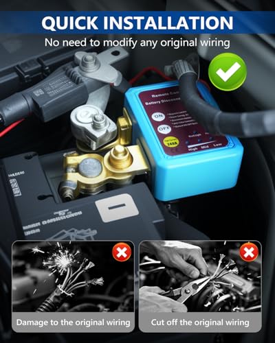 - 【Smart Voltage Protection】SUPAREE Wireless Car Battery Disconnect helps protect your battery and supports consistent vehicle performance. If battery’s voltage drops below 11.8V, the device automatically cuts off power within 180 seconds to prevent over-discharging. When voltage exceeds 13.2V—such as when the engine is running—a safety lock disables the remote to prevent accidental shutdown while driving.